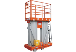 Tangga Elektrik Double Mast type GTWY di operasikan secara semi elektrik bersistem hidrolis dengan standart keamanan tinggi pada setiap paltformnya dan memudahkan operator menyelesaikan kegiatan operasional di atas ketinggian seperti bandara, stadion, gedung tinggi (untuk pemasangan lampu, plafon, dll). Spesifikasi tangga elektrik type GTWY sebagai berikut :