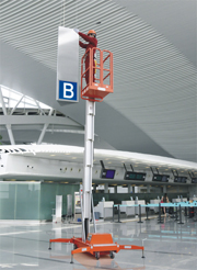 Tangga Elektrik Single Mast type GTWY di operasikan secara semi elektrik bersistem hidrolis dengan standart keamanan tinggi pada setiap paltformnya dan memudahkan operator menyelesaikan kegiatan operasional di atas ketinggian seperti bandara, stadion, gedung tinggi (untuk pemasangan lampu, plafon, dll). Spesifikasi tangga elektrik type GTWY sebagai berikut :